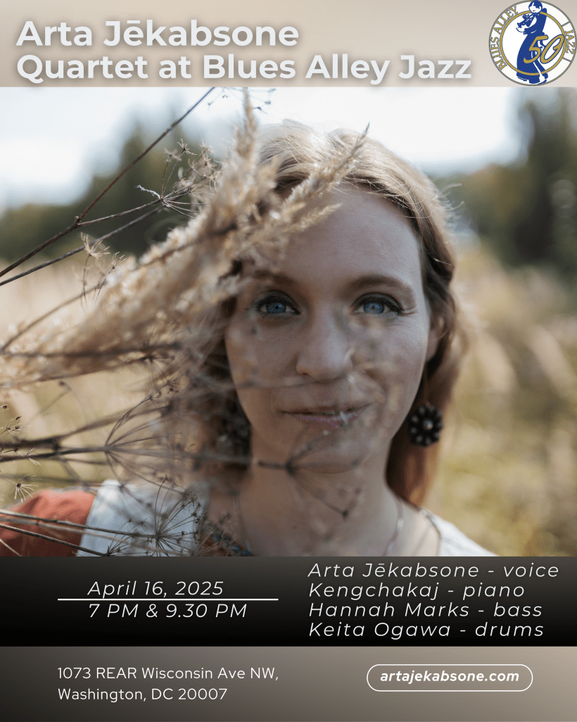 Arta Jēkabsone Quartet at the Blues Alley Jazz on April 16th.
